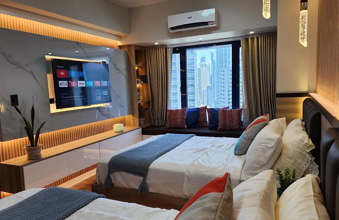ベッドルーム1室のAir Residence Fantasy Sophisticated Chic Family Living 300 Mbps Fast マニラ市から歩いてたった5分離れたCollectiveなどの観光スポットへ行きやすいです。 マラテ教会から2.3kmの距離に位置するこの50m²のアパートは、フィットネスセンターで運動をしたり、屋上プールでリラックスしたりできます。